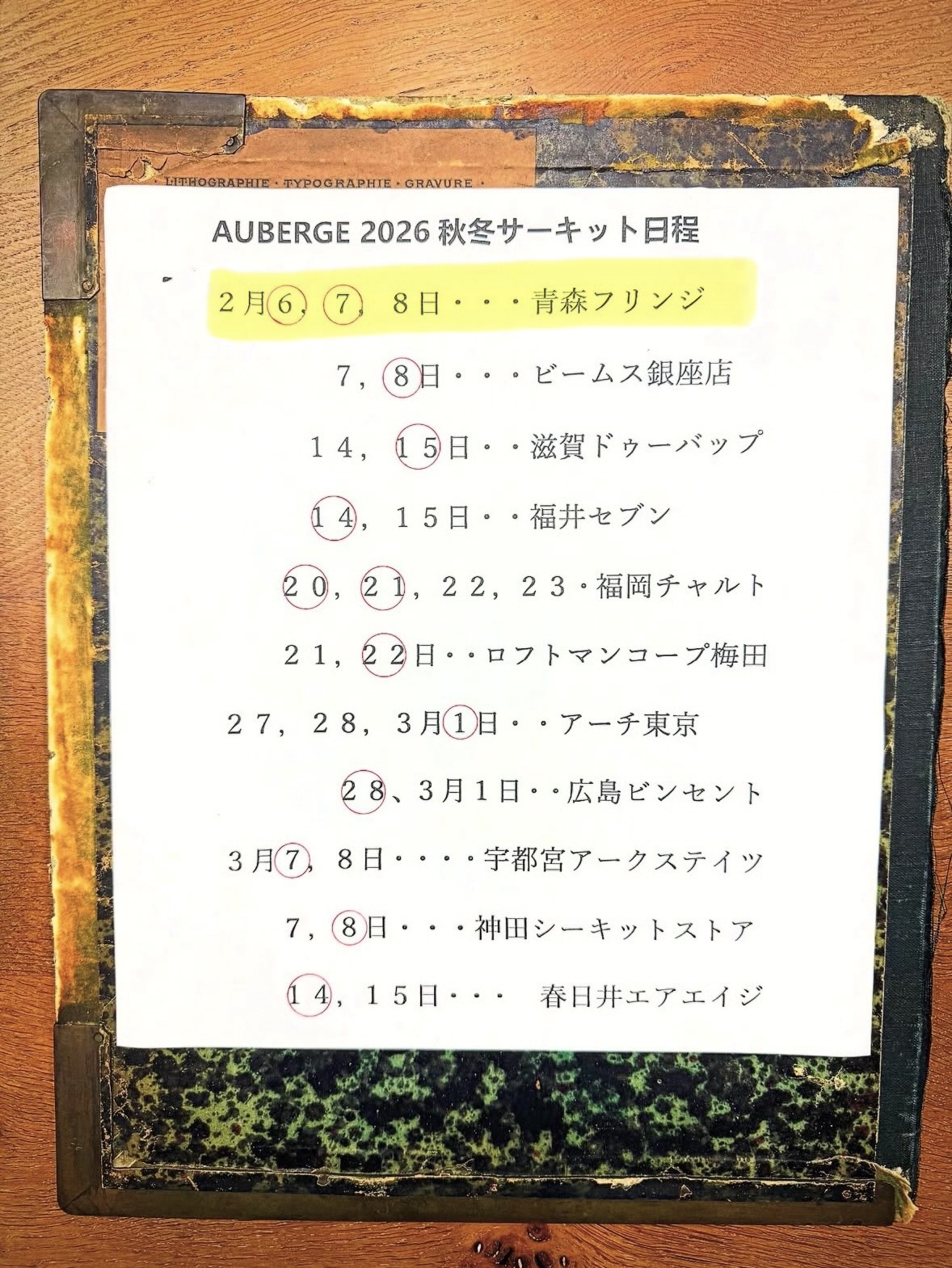 なんと、来たばかりの「AUBERGE」が残りわずかです